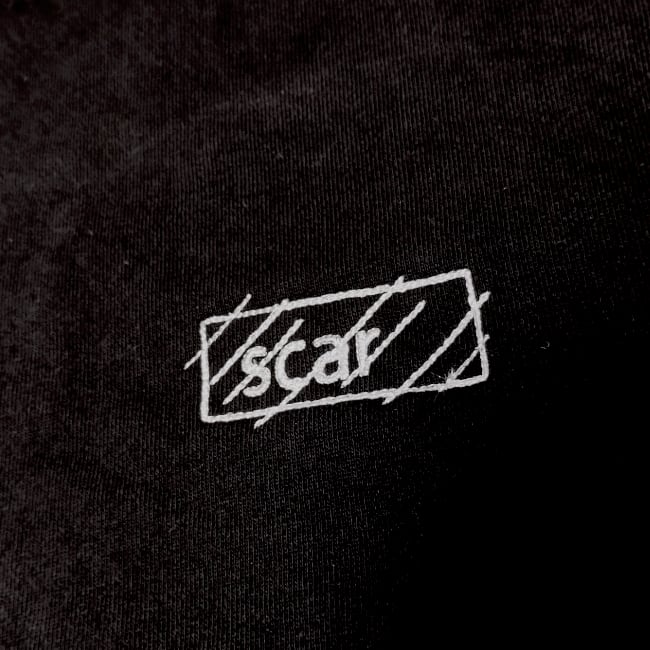 スカーのオリジナルロゴを刺繍。